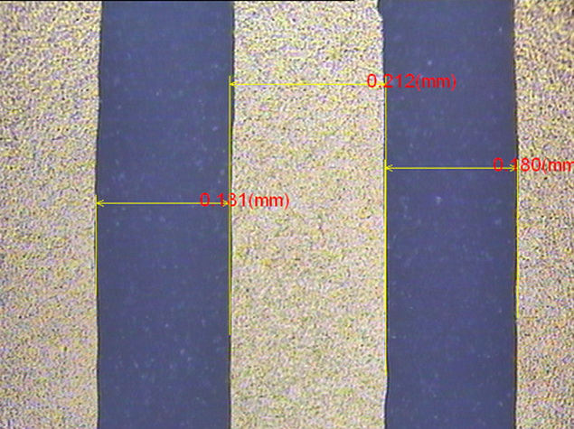 2、線寬:215um,線間距:185um,指長 3.2mm;叉指對數(shù):3對(6指)。
