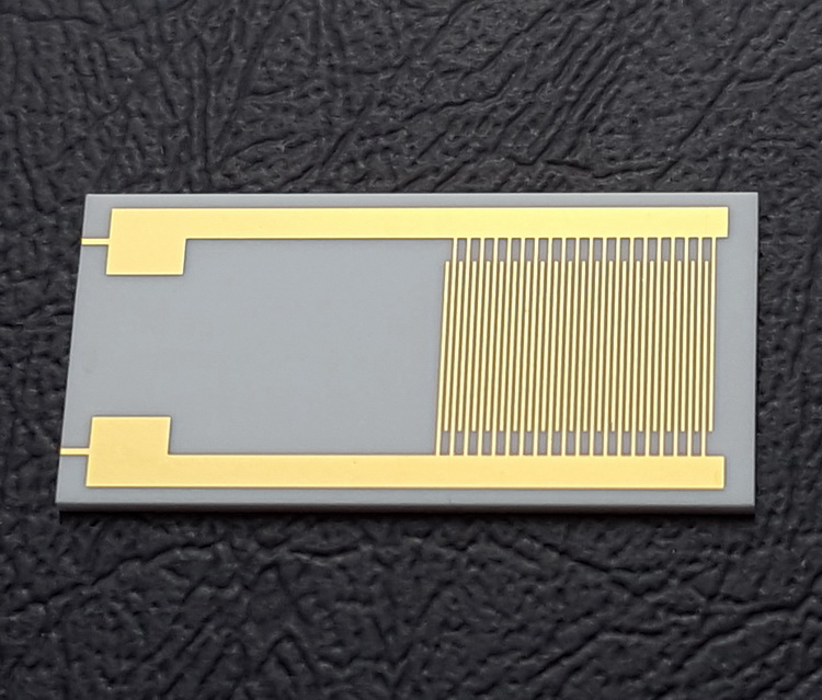 我們提供各種叉指電極,包括不同形狀,不同尺寸,不同線寬線距,不同基材(氧化鋁陶瓷,PI/PET柔性材料,單晶硅),不同工藝(厚膜工藝,DPC工藝,MEMS工藝)。
