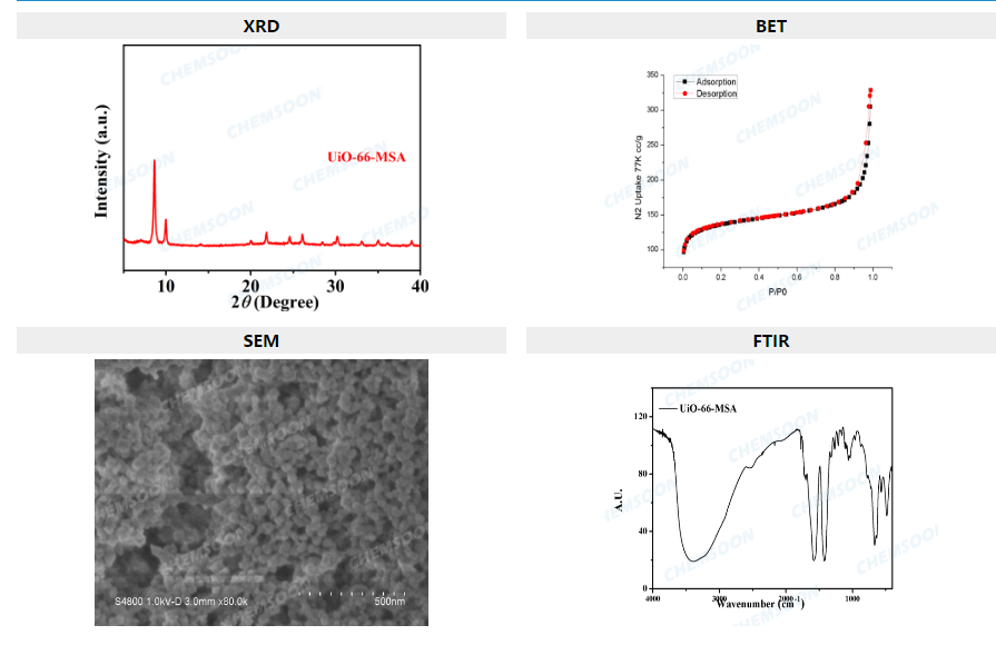 1) UIO-66-MSA 性質(zhì)穩(wěn)定,在水溶液和酸性條件下穩(wěn)定(PH 1-10)