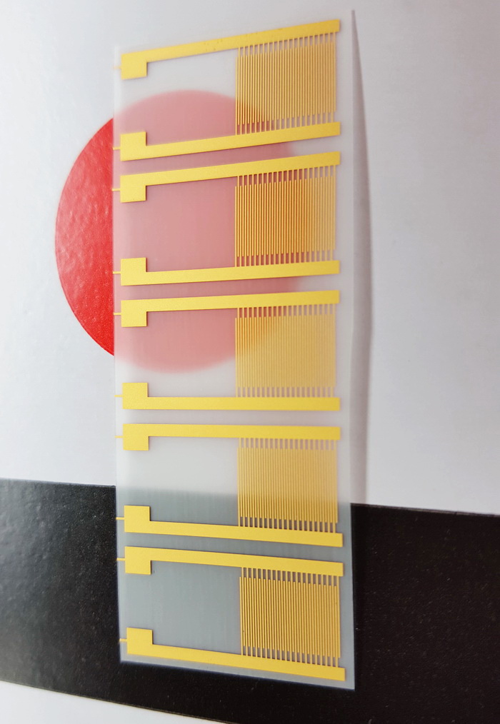 我們提供各種叉指電極,包括不同形狀,不同尺寸,不同線寬線距,不同基材(氧化鋁陶瓷,PI/PET柔性材料,單晶硅),不同工藝(厚膜工藝,DPC工藝,MEMS工藝)。