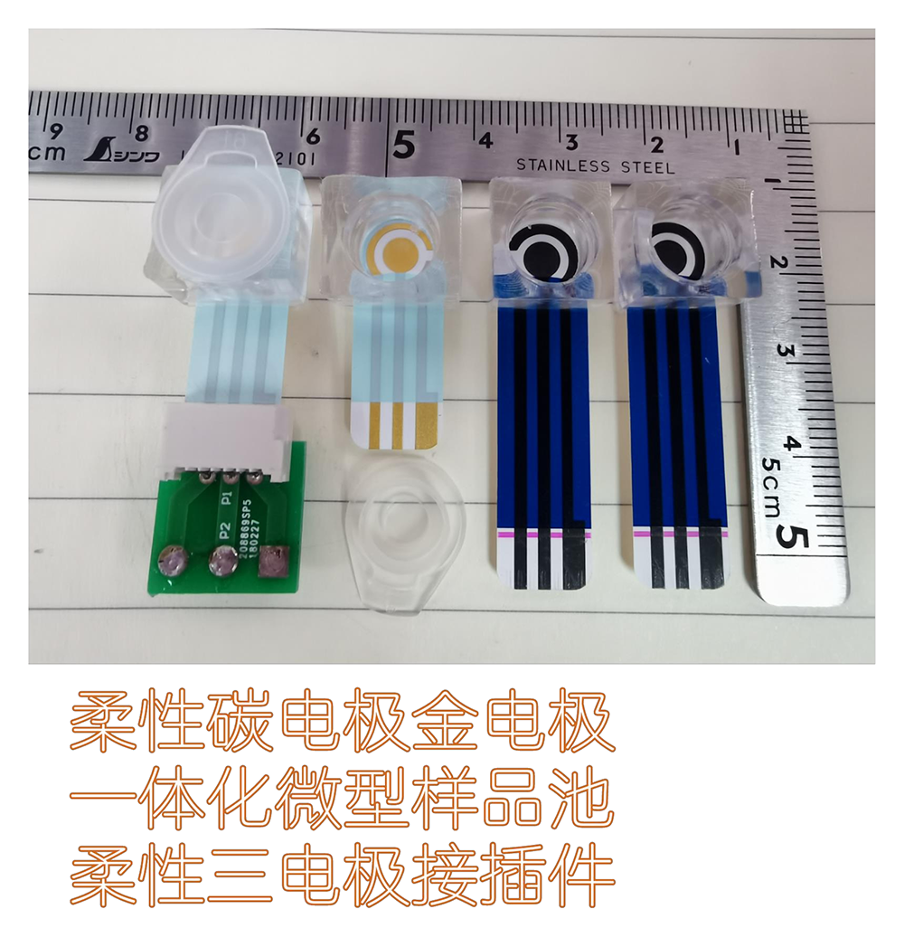 柔性碳電極金電極一體化微型樣品池柔性三電極接插件