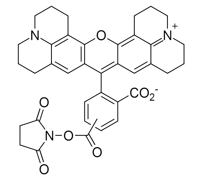 蘇州北科納米科技有限公司生產銷售“5(6)-ROX, SE|5-(和-6)-羧基-X-若丹明, 琥珀酰亞胺酯|cas114616-32-9”“5(6)-ROX, NHS,5-(and-6)-Carboxy-X-rhodamine, succinimidyl ester,Mixed isomers,混合異構體,分子量:631.67,激發(nm):578,發射(nm):604,5(6)-ROX, SE是5(6)-ROX的琥珀酰亞胺酯。它是ROX染料的混合異構體。”,該產品僅用于科研,如果需要請聯系我們