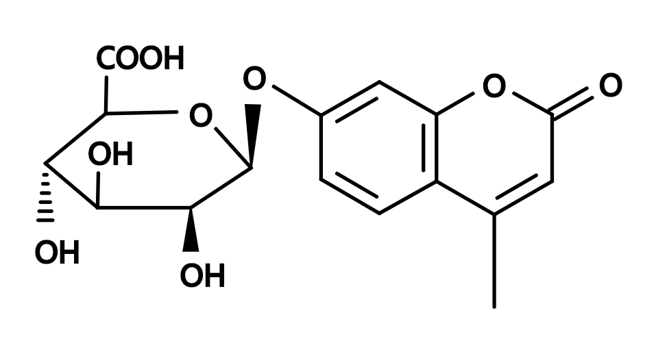蘇州北科納米科技有限公司生產銷售“MUGlcU|CAS881005-91-0|4-甲基傘形酮基-β-D-葡糖醛酸苷”“4-Methylumbelliferyl-beta-D-glucuronide,分子量:352.29,激發(nm):341,發射(nm):441,MUGlcU是一種熒光MU底物,用于使用熒光酶標儀或熒光計檢測細胞提取物和純化的酶制劑中的葡萄糖醛酸酶。7-羥基-4-甲基香豆素(4-甲基傘形酮,MU)的有機和無機酯和糖苷是常用的熒光底物。這些底物產生水溶性藍色熒光香豆素熒光團。MU在pH高于10時產生熒光。”,該產品僅用于科研,如果需要請聯系我們