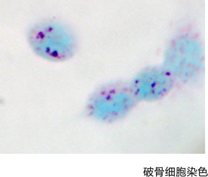 【染色原理】在酸性緩沖液中,細(xì)胞內(nèi)酸性磷酸酶催化底物水解,其生成物進(jìn)而與一種穩(wěn)定重氮鹽偶聯(lián),生成不溶性偶氮染料沉淀。陽(yáng)性反應(yīng)為鮮紅色或深紅色顆粒,定位胞漿。