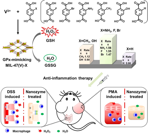 【主要優(yōu)勢】1、MIL-47(V)-NH2 MOF納米酶不僅具有良好的生物相容性,還是一種有效的ROS清除劑,可保護細胞免受氧化損傷;2、類GPx的MIL-47(V)-NH2納米酶對耳部炎癥和腸炎的廣譜抗炎作用;3、高活性MIL-47(V)-NH2的治療效果優(yōu)于低活性MIL-47(V)-H。