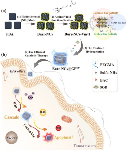 【主要優(yōu)勢】1、利用毛刺缺陷工程的貴金屬基納米系統(tǒng)內(nèi)核(毛刺- ncs)和特定的大分子水凝膠網(wǎng)絡(luò)外殼,使用受限的水凝膠程序構(gòu)建了一個(gè)界面區(qū)隔化納米反應(yīng)器;