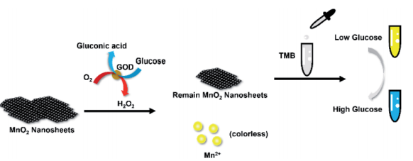 Colorimetric glucose sensing with multiple-color changes by using a MnO2 NSs–TMB nanosystem