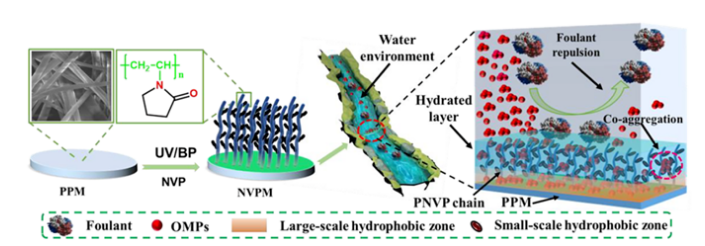 其他說明:密封狀態下保質期半年【主要優勢】PNVP在PPM表面形成水合層,使膜具有優異的抗污染能力。同時,PPM提供的大尺度疏水相互作用和PNVP提供的小尺度疏水相互作用共同促進了OMP的共聚集,賦予了NVPM高吸附能力。