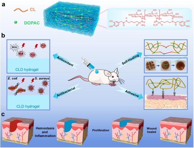 Chitosan-based mussel-inspired hydrogel for rapid self-healing and high adhesion of tissue adhesion and wound dressings