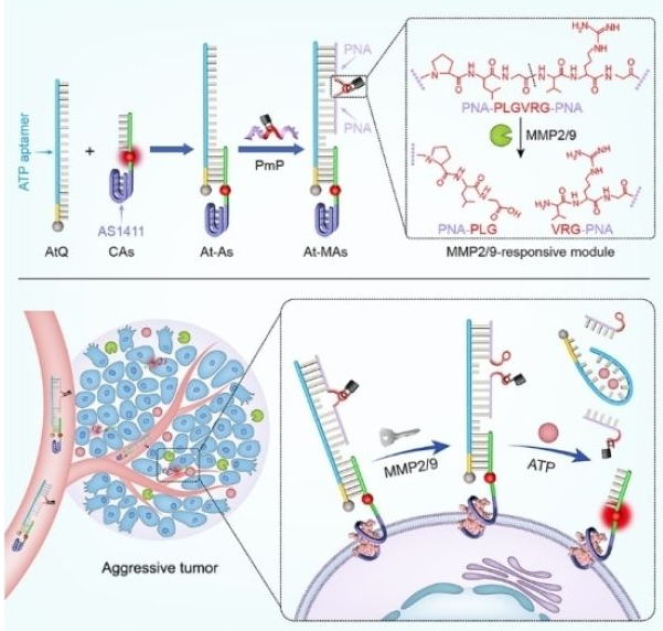Peptide Nucleic Acid (PNA)-Guided Peptide Engineering of an Aptamer Sensor for Protease-Triggered Molecular Imaging和A Multivariate-Gated DNA Nanodevice for Spatioselective Imaging of Pro-metastatic Targets in Extracellular Microenvironment文章鏈接: