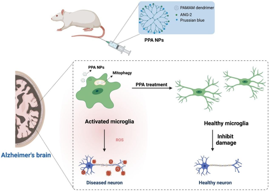 其他說明:密封狀態下保質期半年【主要優勢】具有大量伯氨基表面活性位點的PAMAM樹枝狀大分子作為載體搭載普魯士藍,并在此基礎上修飾了血管生成素-2 (Angiopoietin-2,ANG-2) ,它能夠與毛細血管內皮細胞表面低密度脂蛋白受體相關蛋白-1 (LPR-1) 結合,大大增加PPA納米顆粒對血腦屏障的通透性。