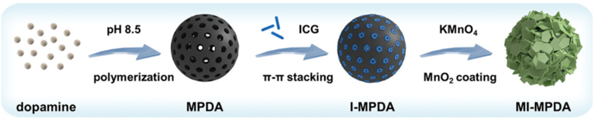其他說明:密封狀態下保質期半年【主要優勢】1、MI-MPDA可激活感染微環境中O2的產生,從而有效緩解生物膜缺氧;2、在近紅外光(NIR)照射下,持續供氧進一步提高了單線態氧(1O2)的水平,通過O2增強的光動力/光熱療法實現了強勁的生物膜消除;3、MI-MPDA通過清除MnO2介導的活性氧,下調炎癥信號通路的因子表達,從而改善炎癥狀態。