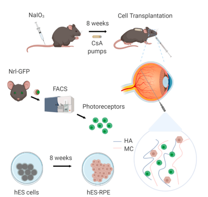 Hydrogel-mediated co-transplantation of retinal pigmented epithelium and photoreceptors restores vision in an animal model of advanced retinal degeneration