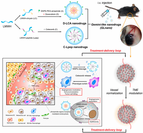 組成:DSPE-PEG-anisamide decoration、LMWH-chrysin nanodrug、DOX