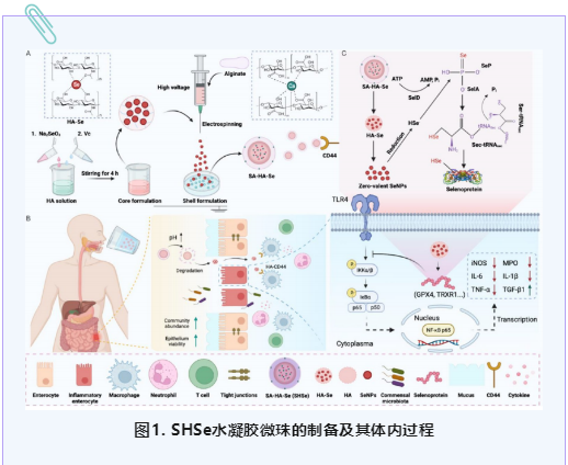 其他說明:密封狀態(tài)下保質期半年【主要優(yōu)勢】一種基于口服水凝膠微珠的生化策略,可以原位合成硒蛋白,因此繞過了口服蛋白遞送的必要性和苛刻條件,同時有效地產(chǎn)生用于治療應用的硒蛋白。水凝膠微珠是通過用海藻酸鈣 (SA) 水凝膠保護殼包裹透明質酸修飾的硒納米粒子合成的。