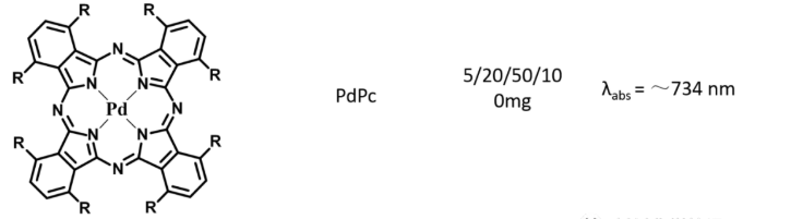 The metal phthalocyanine fluorescent material is a green solid, easily soluble in organic solvents, and the absorption/fluorescence wavelength is in the near infrared region. It is used in fluorescence imaging, photoacoustic imaging, nuclear magnetic resonance imaging, photothermal therapy, photodynamic therapy, and sonodynamic therapy And triplet-triplet annihilation upconversion (TTA) and other fields have broad application prospects.