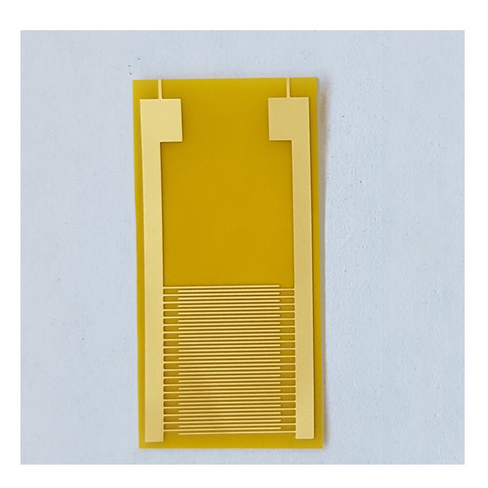 1. Matrix: Polyimide (PI); PI thickness: 13 um; dimensions: 10mm×20mm. 2. Line width: 100 um; Line distance: 100 um; Finger length: 6.3mm; Interdigital number: 20 (40 fingers). 3. Conductive layer structure: copper/nickel/gold with thicknesses of 12um, 3um, and 1um respectively.