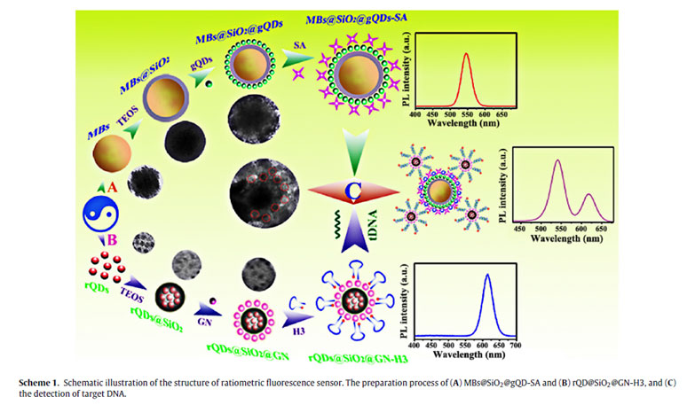 A fluorescent sensor for the specific and selective detection of Bt has been developed by the CdSe/ZnS quantum dots applied by Huazhong Agricultural University and Guangxi University for Nationalities: In detection, when there is no detection target, only the signal of gQDs exists in the fluorescence signal analysis. Output, the hairpin DNA structure is in an unopened state; when the detection target exists, the target DNA sequence will hybridize with the hairpin DNA to achieve an open loop, rQDs@SiO2 is captured by MBs@SiO2@gQDs@SA, and the connected whole is due to fluorescence resonance Energy transfer (FRET), the fluorescence intensity (I620) of rQDs increases, and the fluorescence intensity (I540) of gQDs decreases. Data analysis shows that ratio fluorescence (I620/I540) exhibits better linearity and higher sensitivity in Bt detection. This article was published in the latest issue of Sensors and Actuators B in 2017 hosted by Elsevier. The magazine has an impact factor of 5.4 in 2016 and belongs to the first area of the JCR journal of the Chinese Academy of Sciences. This research provides a new technical guidance scheme for the production of high-efficiency and high-stability quantum dot fluorescence sensors.