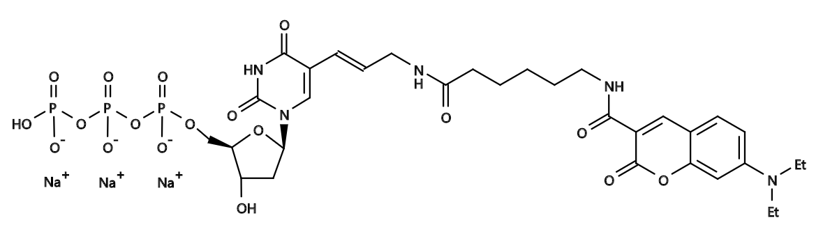 蘇州北科納米科技有限公司生產銷售“DEAC-dUTP|1 mM in Tris Buffer(pH 7.5)|DEAC修飾的脫氧尿苷5-三磷酸酯”“分子量:945.58,激發(nm):411,發射(nm):472,染料修飾的脫氧尿苷5-三磷酸酯(例如氨基烯丙基-dUTP)可用于通過常規酶摻入方法(例如逆轉錄,缺口翻譯,隨機引物標記或PCR)生產含染料的DNA。”,該產品僅用于科研,如果需要請聯系我們