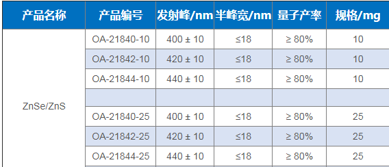 溶性ZnSe/ZnS量子點產品是以ZnSe為核心,ZnS為殼層,表面由疏水配體包裹的核/殼型熒光納米材料,平均的量子產率為80%,儲存時應避免陽光直射,4度密封暗處保存,可以為客戶訂制生產390nm-440nm波長左右不同克數的產品。本產品具有粒徑均一,吸收光譜寬泛,發射光譜對稱,熒光強度高而穩定等特點,特別適用于量子點發光二極管(QLED)的藍光組成部分,也適用于太陽能電池與生物熒光標記等領域.