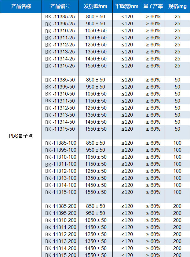 Oil-soluble PbS quantum dots near infrared emission light PL 800 nm - 1600 nm
