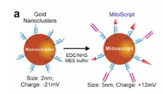 Other instructions: shelf life of half a year in sealed state [Main advantages] MitoScript can be effectively taken up by cells and then target mitochondria. Meanwhile, the endogenous fluorescence generated by the nanoscale quantum confinement of gold nanoclusters can be used to observe cellular uptake and mitochondrial targeting. Most critically, MitoScript is efficiently and selectively delivered to the mitochondria and regulates mtDNA transcription.
