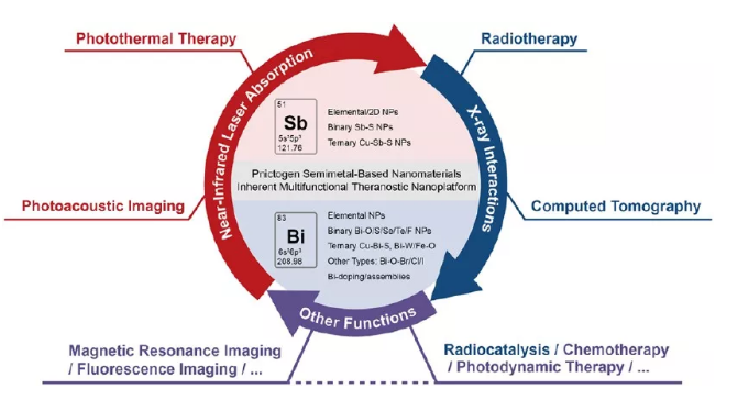 Xujiang Yu. et al. Pnictogen Semimetal (Sb, Bi)-Based Nanomaterials for Cancer Imaging and Therapy: A Materials Perspective. ACS Nano. 2021