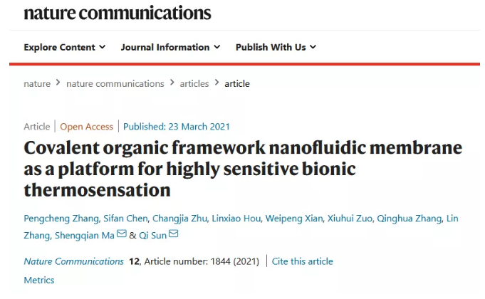 浙江大學(xué)孫琦教授Nature子刊:人造熱感皮膚來了!COF納米流控膜作為高靈敏仿生熱感覺平臺的研究