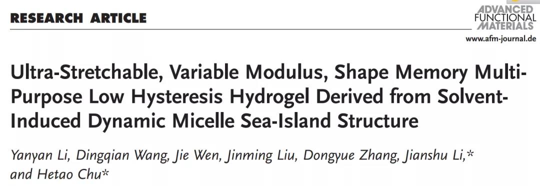 川大李建樹/楚合濤教授《AFM》:超拉伸、可調(diào)模量、形狀記憶、多功能低滯后水凝膠