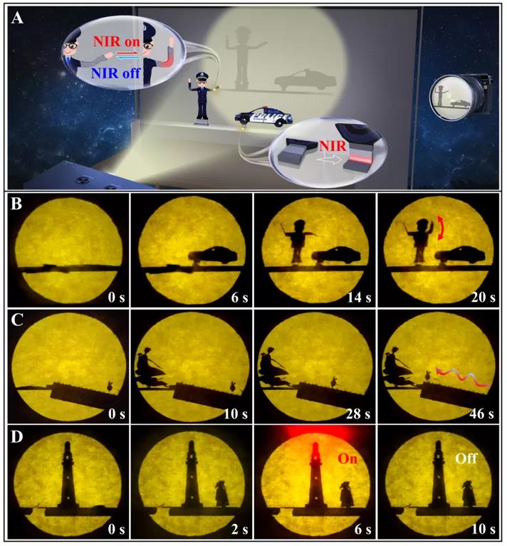 圖3 結合LM-LCN和LM-SMP的可編程軟機器人在NIR光下的皮影展示