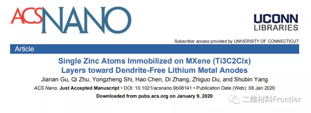 ACS NANO:MXene (Ti3C2Clx)層上的單鋅原子對(duì)無(wú)枝晶鋰金屬陽(yáng)極的固定