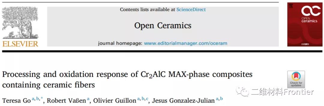 Open Ceramics:含陶瓷纖維Cr2AlCMAX相復合材料的加工及氧化響應