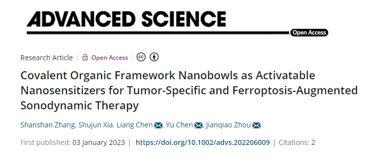 Adv. Sci. 2023:COF基材料用于腫瘤鐵死亡和鐵增強聲動力療法