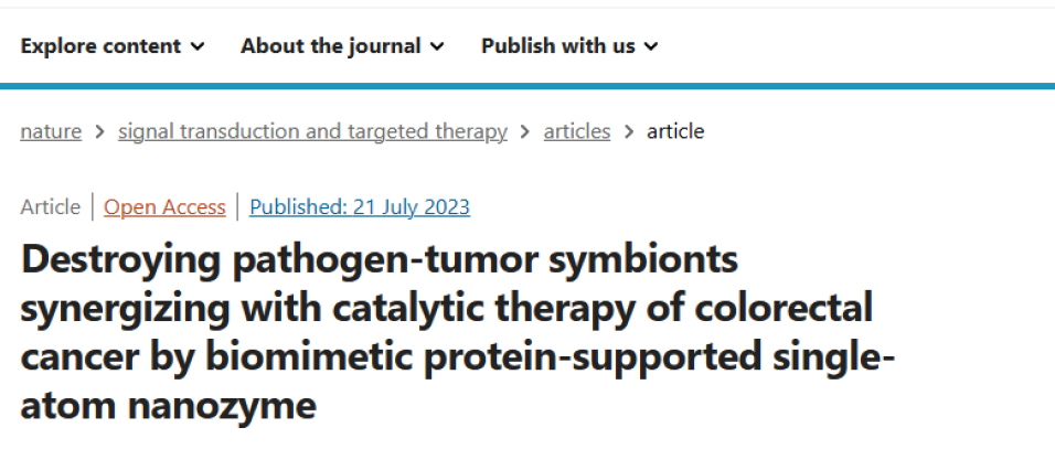 《Nature》仿生蛋白支持的單原子納米酶破壞病原體-腫瘤共生體與結直腸癌催化治療