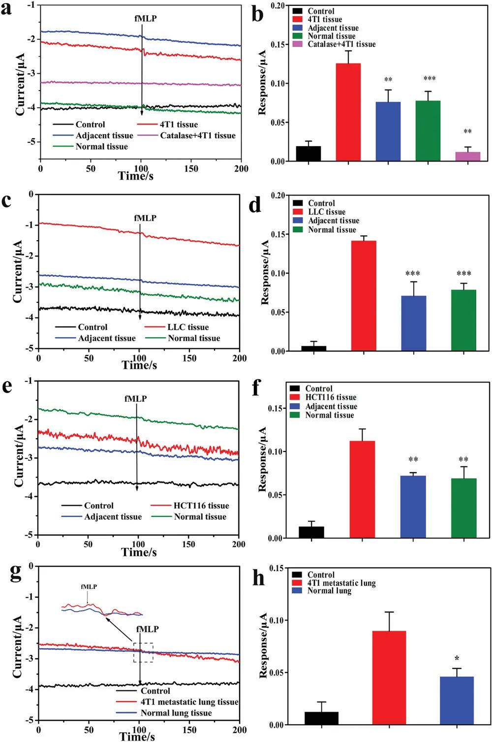 (2) This research shows that the H2O2 sensor has the potential to quickly detect tumor tissues, so this technology also provides a new method for tumor pathological diagnosis independent of traditional pathology laboratories.