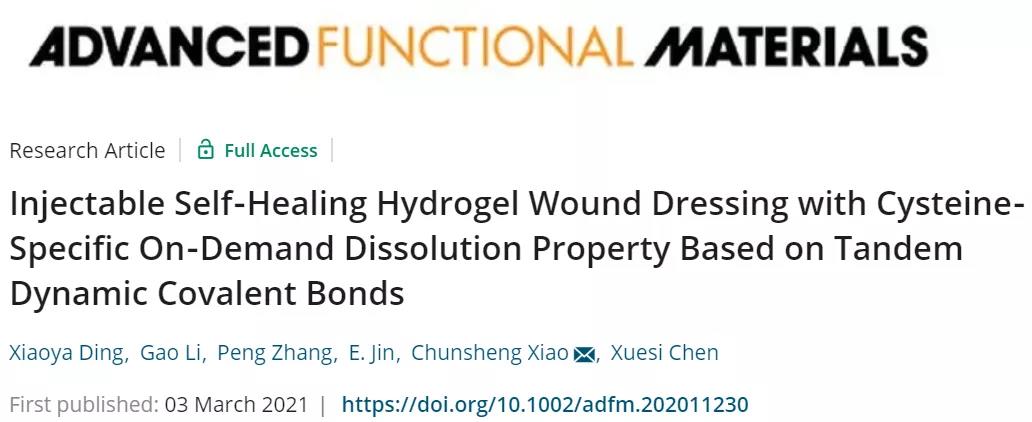 Academician Chen Xuesi of Changchun Institute of Applied Chemistry and Associate Researcher Xiao Chunsheng "AFM": Development of tandem dynamic covalent bond, injectable, self-healing hydrogel wound d