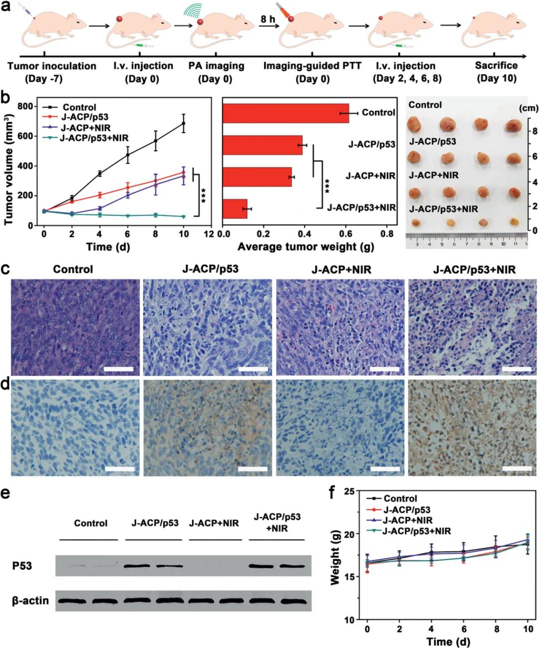 (1) In the experiment, a chitosan/gold nanohybrid (J-ACP) with a Janus structure was constructed using the active mobility of the Janus structure, the selective surface functionalization of the polysaccharide domain, and the photothermal effect of gold nanorods. Studies have shown that near-infrared-responsive J-ACP composed of polycationic chitosan nanospheres and PEGylated gold nanorods can realize complementary photothermal therapy (PTT)-gene therapy guided by photoacoustic (PA) imaging.