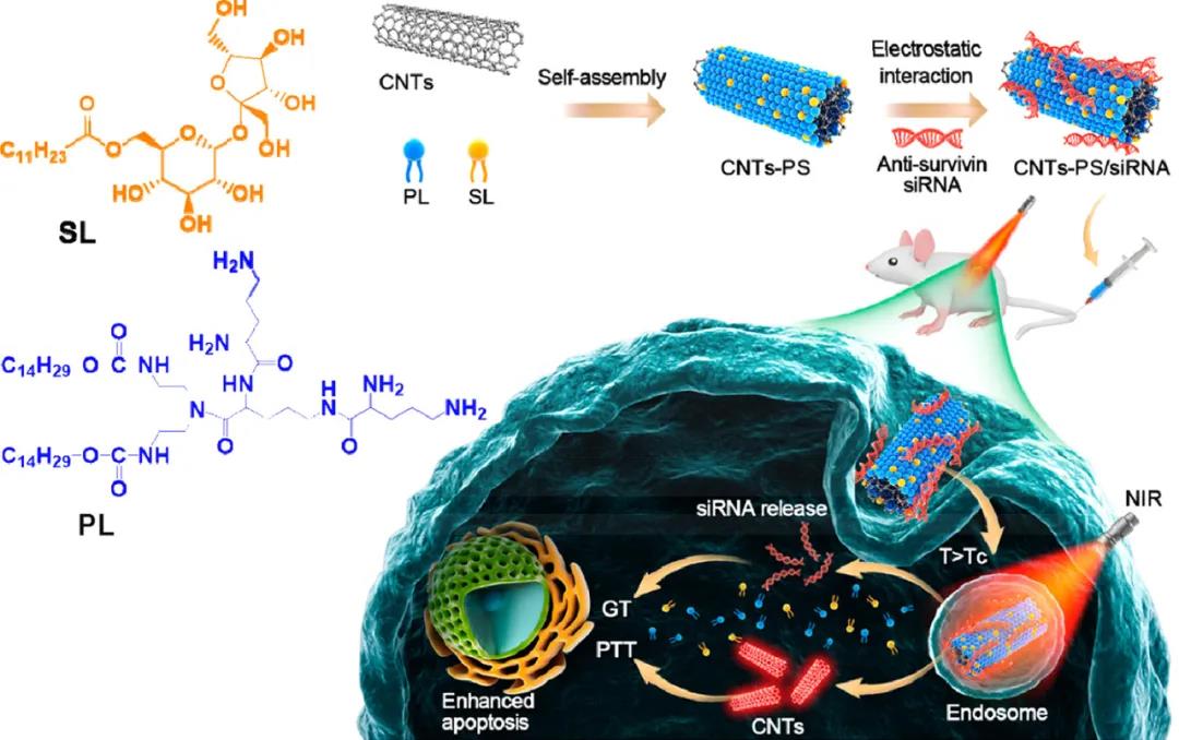 Yinan Zhao, et al. Temperature-Sensitive Lipid-Coated Carbon Nanotubes for Synergistic Photothermal Therapy and Gene Therapy. ACS Nano, 2021.
