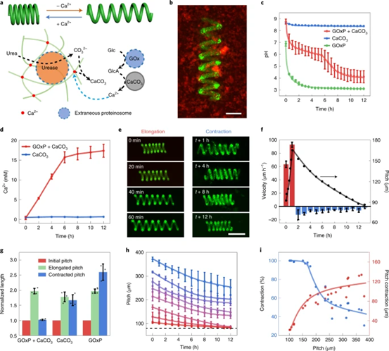 The team attached large single polynucleotide / peptide microcapsules at one or both ends of the helix like primitive cell filament to generate independent soft micro actuators that can sense and process chemical signals to perform mechanical work. Different translocation patterns are achieved through the synergistic or antagonistic enzyme reactions in the screw connector or the attached microcapsule load.
