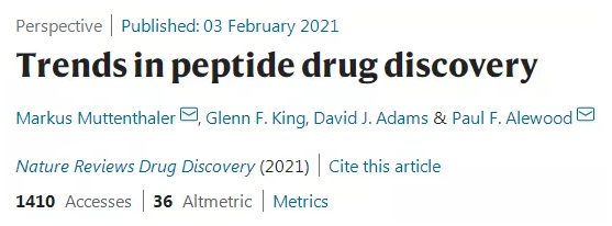 On February 3, 2021, Nature Reviews Drug Discovery published a review article by scientists from the University of Queensland and the University of Wollongong in Australia on the trend of peptide drug development.
